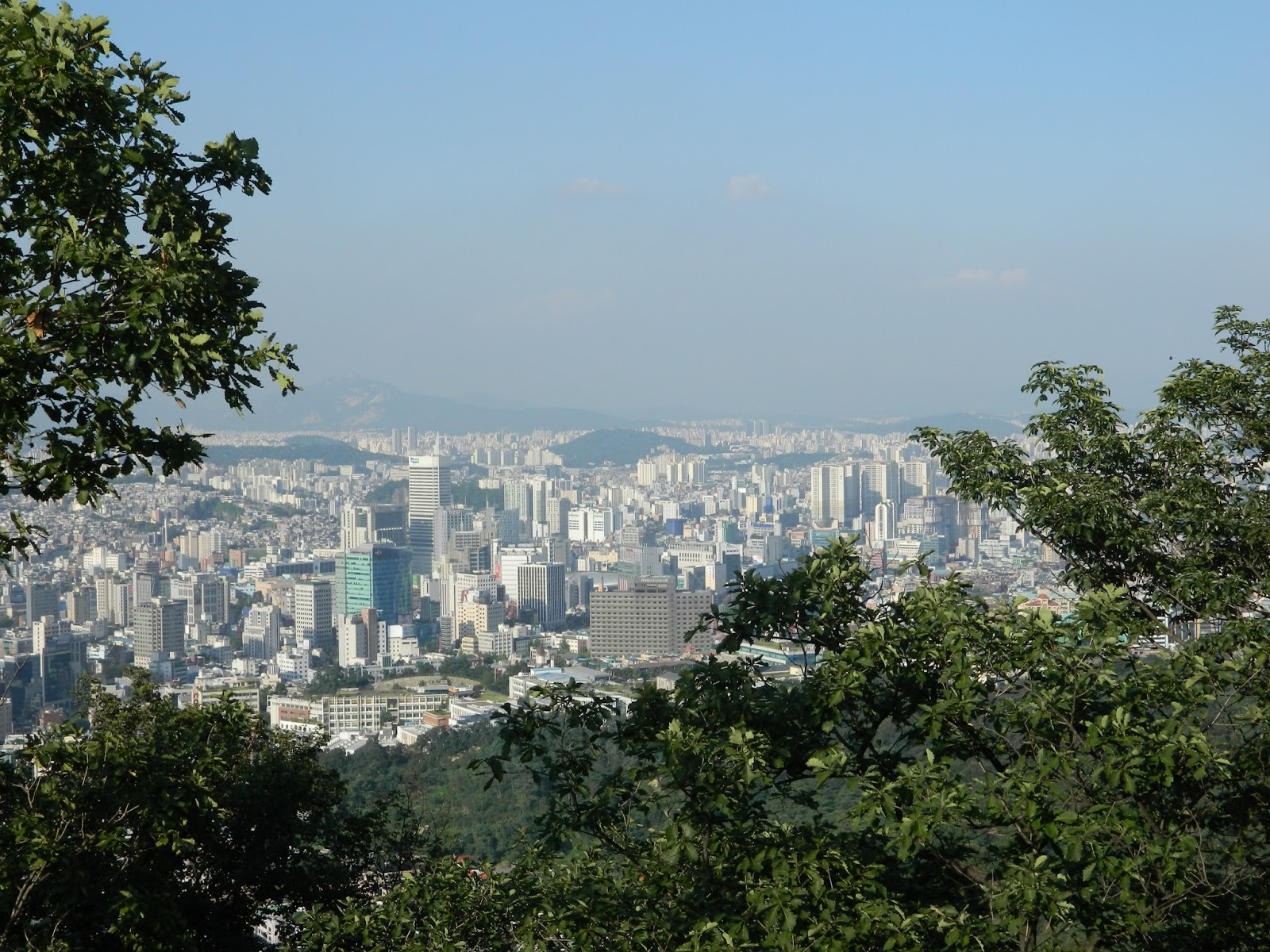 tornin juurelta pystyi näkemään Seoulia reunustavien vuorien